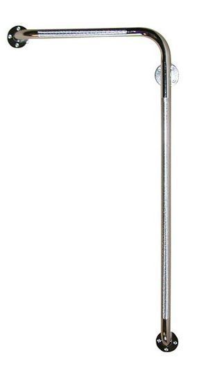 - Угловые. Угловые поручни для инвалидов являются незаменимыми, если место установки не рассчитано на другой тип конструкции. Кроме того, такие модели благодаря своей форме более универсальны, так как помогают хвататься за него как вертикально, так и горизонтально. К тому же трехточечное крепление считается более надежным.