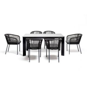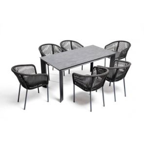 Обеденная группа 4SIS "Венето" на 6 персон со стульями "Милан", роуп тёмно-серый