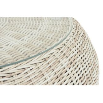 Каркас столика изготовлен из алюминия, вручную оплетенного круглым искусственным ротангом.