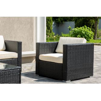 | В основе мебели - стальной каркас и плоский искусственный ротанг. Каркас оплетен с помощью ручного метода и представлен в черном цвете. | |