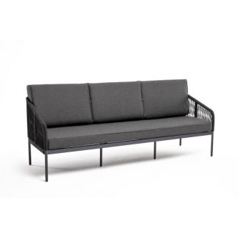 Диван 4SIS "Канны" трёхместный, роуп темно-серый круглый, ткань темно-серая 027