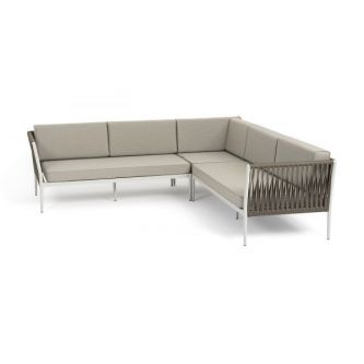Диван модульный плетеный 4SIS Касабланка каркас алюминий, роуп серо-коричневый, ткань бежевая