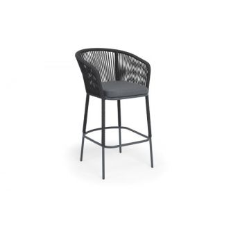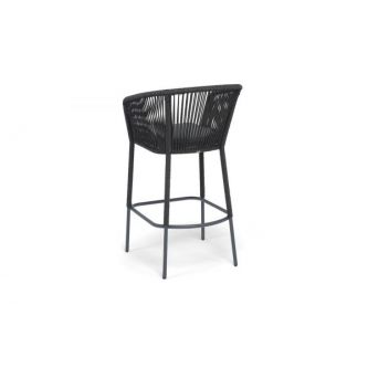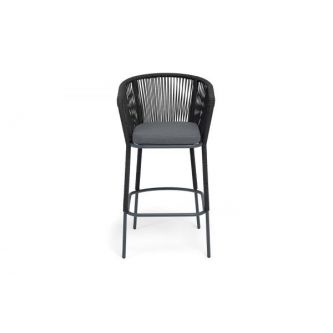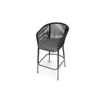 Барный стул «Марсель» представлен в стальном каркасе темно-серого (RAL7024) цвета, оплетен вручную эластичными синтетическими лентами из высокопрочных полиэфирных волокон, темно-серого оттенка, размер стула: 590×705×1070 мм. Высота сидения без подушки – 730 мм.