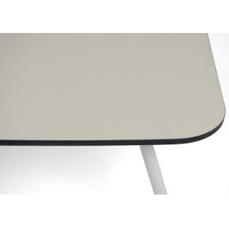 Столешница изготовлена из прочного и устойчивого к механическим воздействиям компакт-пластика HPL в цвете "крем".