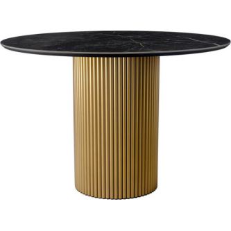 Стильный нераздвижной стол Aura – идеальное сочетание элегантности и функциональности. Стол Aura обладает глянцевой премиальной круглой столешницей из керамики, имитирующей чнрный мрамор, диаметром 110 см.