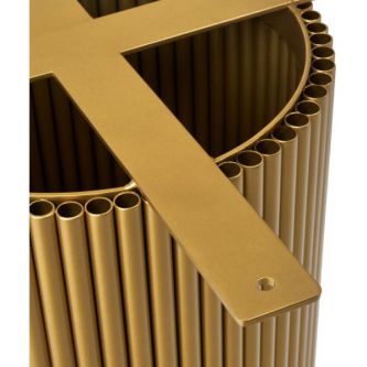 | Элегантная круглая опора: | металлическая основа золотого цвета придает столу стабильность и стильный современный вид, идеально гармонируя с мраморной столешницей. |