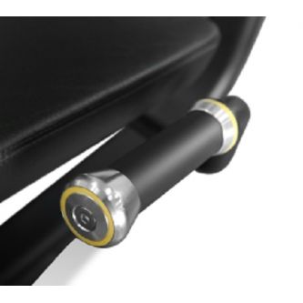 Прорезиненные, нескользящие рукоятки обеспечивают надежное сцепление рук пользователя во время занятий. Эргономичное сиденье из высокопрочной экокожи гарантирует повышенный комфорт на протяжении всей тренировки. Подушки с полиуретановым наполнителем максимально смягчают давление на ноги. Фиксатор для ног регулируется по вертикали. Тренажер оснащен держателем для бутылки с водой.