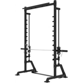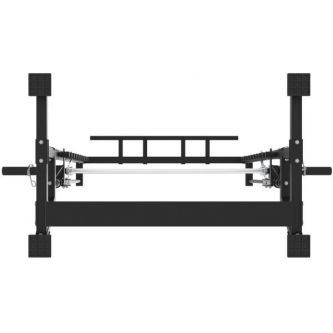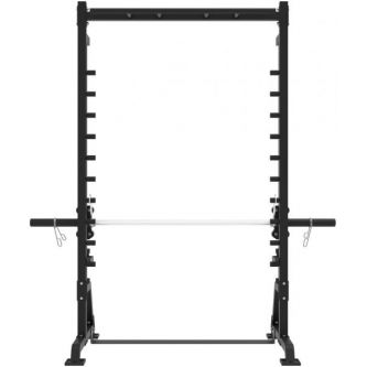 Максимальная нагрузка на перекладину составляет 70 кг, а универсальный посадочный диаметр 25 / 50 мм позволяет использовать блины и грифы различных стандартов. Частая перфорация стоек обеспечивает точную настройку под рост пользователя и тип выполняемого упражнения.