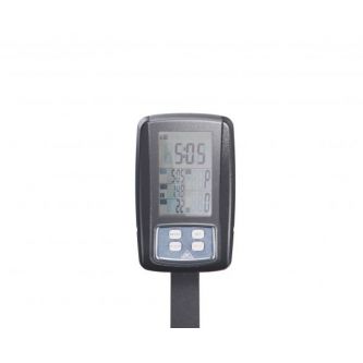 Монохромный дисплей отображает такие параметры как время, скорость, дистанция, калории, количество оборотов в минуту и пульс. Есть целевой режим и режим восстановления.
