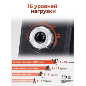 Магнитная система с механической регулировкой предлагает 16 уровней нагрузки, позволяя легко адаптировать интенсивность тренировки под индивидуальные цели и уровень подготовки, а вес маховика 3 кг способствует плавной и стабильной работе тренажёра, создавая комфортные условия для длительных и эффективных тренировок.