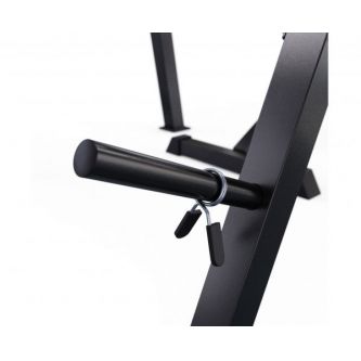 Скамья для жима имеет посадочное место для хранения дисков 25 мм. Длина посадочного места равна 20 см, а в комплекте идут 2 пружинных замка.