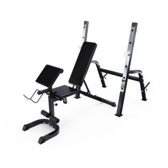 Скамья со стойками под штангу с партой GORILLA черного цвета — это удобный и функциональный тренажёр для домашних тренировок.