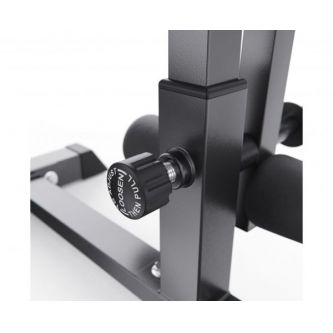 Высота держателей под штангу регулируется на 6 уровней от 46,5 до 138,5 см, что обеспечивает комфорт во время выполнения упражнений и позволяет настроить тренажер под себя.