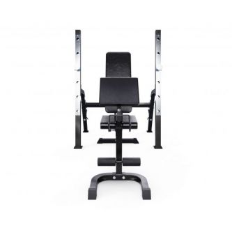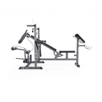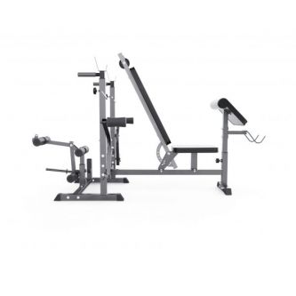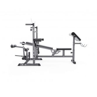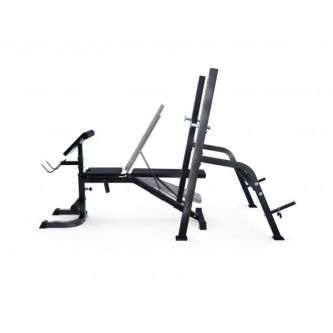 Максимально допустимая нагрузка на спортивную скамью составляет 250 кг. Нагрузка на парту может достигать 100 кг, а нагрузка на держатели под штангу составляет 100 кг.