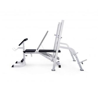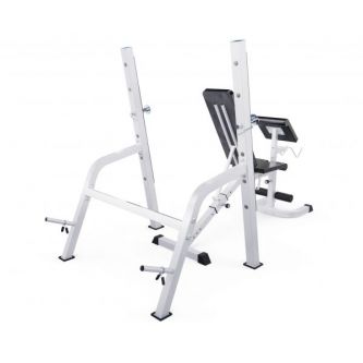 Скамья со стойками под штангу с партой GORILLA белого цвета — это удобный и функциональный тренажёр для домашних тренировок.