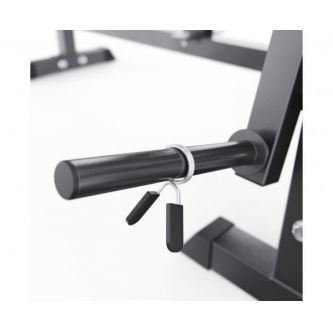 Максимальная нагрузка на скамью составляет 280 кг, включая 180 кг на сиденье, 60 кг на валики и до 40 кг на каждый рычаг для рук-бабочек. Это позволяет безопасно тренироваться с большими весами. Посадочный диаметр для дисков — 25 мм, длина посадочного места — 18 см. В комплект входят 2 пружинных фиксатора.