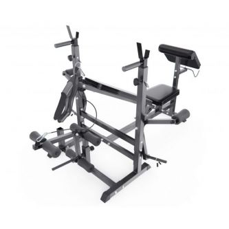 | Многофункциональность. Тренажёр подходит для выполнения различных упражнений: | жим лёжа, приседания, скручивания на пресс, сгибания и разгибания рук и ног, жим на трицепс, отжимания на брусьях и других. |
