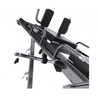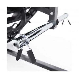 Максимальная нагрузка на тренажер составляет 400 кг. Прочный профиль рамы (50 х 70 х 2 мм и 50 х 50 х 1,8 мм) обеспечивает устойчивость даже при интенсивных занятиях. Посадочные диаметры держателей — 28–31 мм и 51 мм, под стандартные и олимпийские диски.