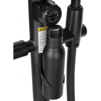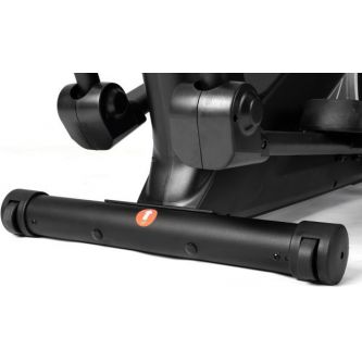 Эллипсоид стоит устойчиво благодаря компенсаторам неровности пола, легко перемещается на транспортировочных роликах, а подставка под планшет и держатель для бутылки держат всё необходимое под рукой.