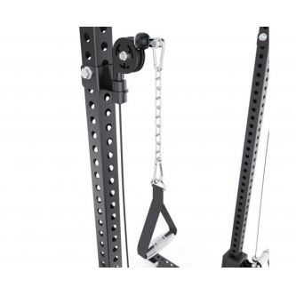 Встроенный кроссовер расширяет функциональность тренажера, позволяя прорабатывать все основные группы мышц. Кроме того, с одной стороны рамы предусмотрено специальное отверстие для установки грифа, которое позволяет использовать раму как Лэндмайн, выполняя жим и другие упражнения с естественной амплитудой движения.