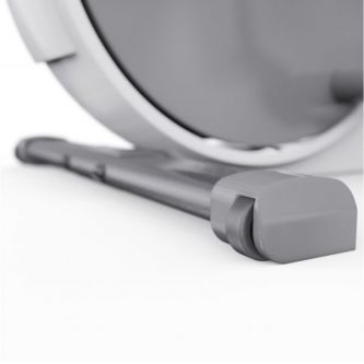 Одним из ключевых преимуществ тренажёра является его складная конструкция. Это особенно удобно для использования в квартирах или небольших помещениях. Такой компактный эллиптический тренажёр впишется даже в ограниченное пространство. Для удобного перемещения предусмотрены транспортировочные ролики, а компенсаторы пола позволяют установить тренажёр ровно даже на неровной поверхности.
