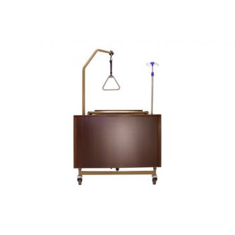 Деревянное ложе, выполненное из высокопрочных выпуклых ламелей, имеет ширину 90 см, а торцевые спинки изготовлены из массива бука с облицовкой ЛДСП. Такой дизайн придаёт кровати эстетичный и современный внешний вид, гармонично вписываясь в интерьер любого лечебного заведения.
