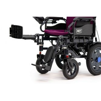 Коляска MET COMFORT 110 имеет механизм, который защищает кресло от опрокидывания и обеспечивает максимальную безопасность пользователю. Спинку кресла можно откинуть назад для большего комфорта, также можно поднять подножки, чтобы принять горизонтальное положение.