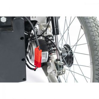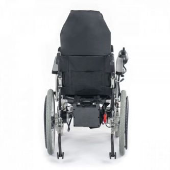 Кресло-коляска электрическое оборудовано задним приводом, реализованным в виде двух независимых электромоторов на безугловом редукторном соединении с ведущими колёсами.