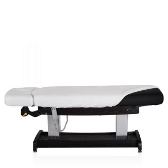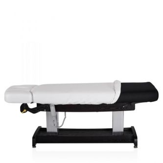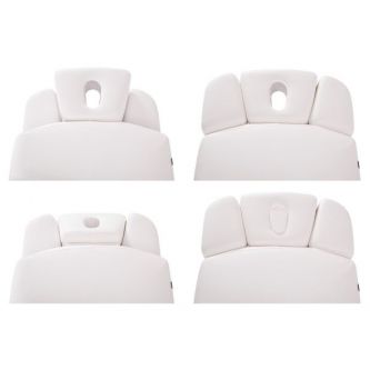 Конструкция стола включает в себя подъёмный механизм, обеспечивающий регулировку высоты для удобства как клиента, так и специалиста. Подголовник стола имеет возможность регулировки по высоте и углу наклона, что позволяет адаптировать его под индивидуальные потребности и предпочтения клиента, обеспечивая оптимальную поддержку и комфорт во время процедур.