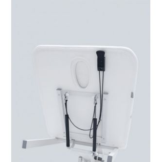 Высота стола регулируется с помощью электропривода, а подвижная секция регулируется пневматическим способом.