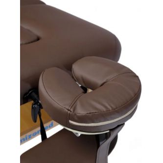 Мягкое наполнение из пенополиуретана толщиной 7 см гарантирует максимальный комфорт для клиента. Вырез для лица и съёмный подголовник диаметром 28 см добавляют удобства в использовании.