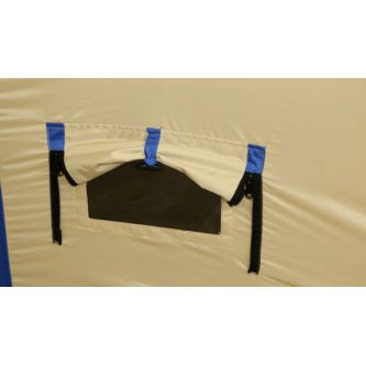 | Вентиляционные окна на стене и двери палатки для проветривания во время ночлега или дождя. | |