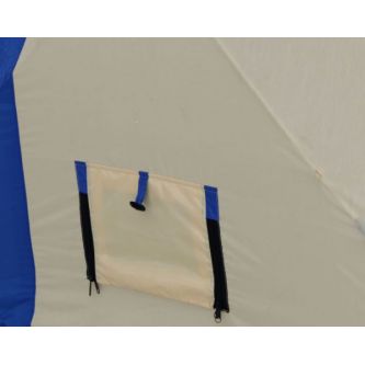| Вентиляционные окна на стене и двери палатки для проветривания во время ночлега или дождя. | |