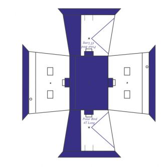 Палатка оснащена: двумя входами; четырьмя вентиляционными окнами со съемными прозрачными клапанами, которыми можно регулировать поток поступающего воздуха в палатку; четырьмя смотровыми окнами; двумя клапанами притока свежего воздуха; двумя сетчатыми полками на потолке и двумя сетчатыми карманами на стенах палатки, в которые очень удобно складывать снаряжение.