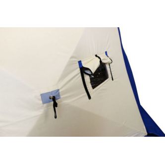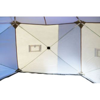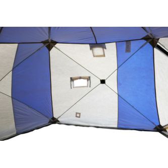 Зимняя палатка Polar Bird Family T FEST одна из самых больших серии палаток Polar Bird. Размер палатки по полу 445 х 385 см. По центру высота палатки 205 см, поэтому в ней можно ходить в полный рост. Палатка оснащена вентиляционными окнами и клапанами приточной вентиляции. При этом все окна имеют козырек для предотвращения попадания снега внутрь.