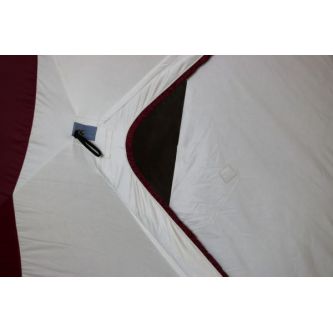 В зимних палатках Снегирь серии «Т» используется синтепон плотностью 150 г/м², более толстый чем в остальных палатках (100 г/м²). Он более пышный, а значит лучше и дольше держит тепло. Палатка оснащена отстегивающимися клапанами для притока свежего воздуха. Окна также оснащены съемными прозрачными клапанами, благодаря чему можно регулировать и настраивать вентиляцию. Палатка имеет 2 внутренние юбки, с системой крепления для пола (лента Велькро). Это полностью исключает возможность поддувания холодного воздуха.