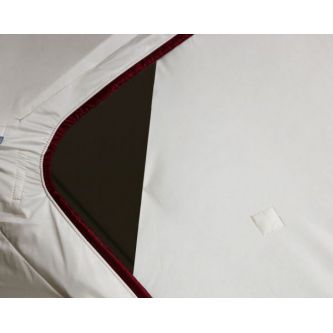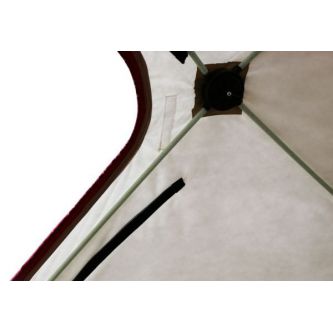 Стены палатки изготовлены из двух слоев водоотталкивающей ткани Oxford 240D с полиуретановым покрытием, между которыми находится толстый слой утеплителя, синтепона плотностью 150г/м2. Светлые ткани, используемые на внутренней части стен, обеспечивают отличную видимость внутри палатки, даже без открытия шторок на окнах. Каркас изготовлен из надежных пластиковых хабов и стеклокомпозитных материалов собственного производства, обладающих повышенной прочностью и жесткостью, благодаря чему палатке не страшен самый сильный ветер.